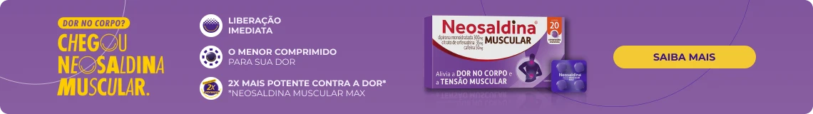 Com ação analgésica e relaxante, o medicamento ajuda no alívio da dor muscular e da dor de cabeça tensional, devolvendo conforto e movimento com rapidez. E para dores mais intensas, use Neosaldina Muscular MAX, com o dobro de eficácia 6!